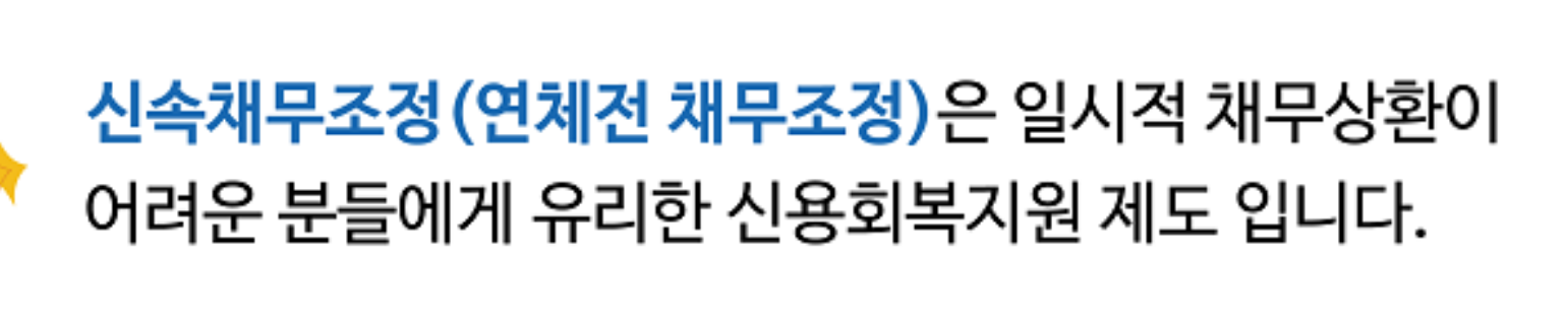 - 채무가 법원에 의해 이미 조정된 경우 : 이미 법원에서 개인회생이나 파산 절차가 진행 중인 경우에는 신청할 수 없습니다.
