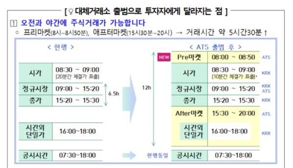 이러한 운영 시간은 기존 한국거래소의 거래 시간과 비교했을 때 상당히 확장된 것입니다.
